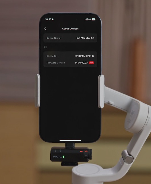 Когда передатчик подключен к телефону через Bluetooth, вы можете обновить прошивку передатчика напрямую через приложение Mimo. При подключенном к смартфону приемнике можно завершить обновление системы в одно нажатие. Настройки шумоподавления, автоматического ограничения и начала/остановки записи также можно настроить в приложении.